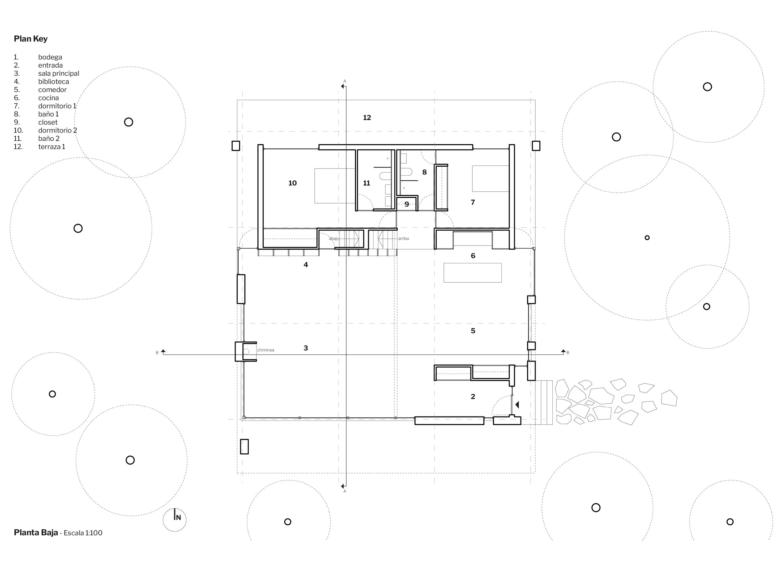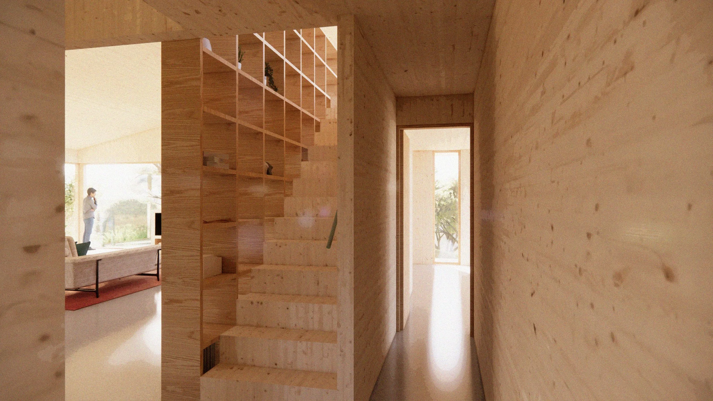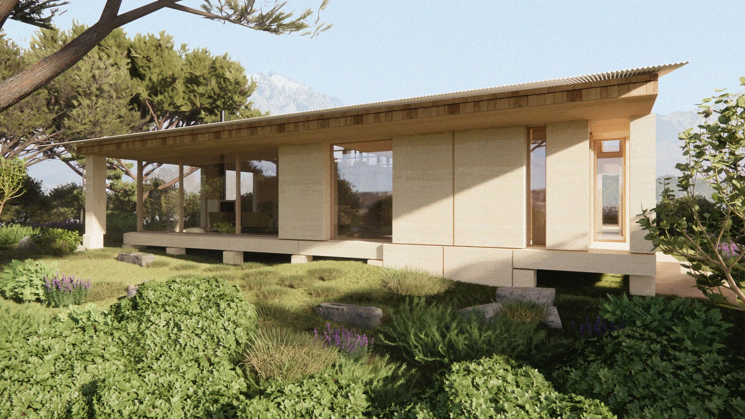 Casa Rústica toma su nombre del deseo del cliente de una vivienda que refleje una sensibilidad rural y se construya de manera sencilla y sobria. El proyecto surge a partir de la pregunta de cómo aprovechar grandes bloques de piedra desechados en una cantera—potencialmente disponibles a un coste más bajo. Con la intención de utilizar el menor número de piezas posible, la piedra se eleva del suelo y sirve de base para una serie de paneles de madera contralaminada (CLT).